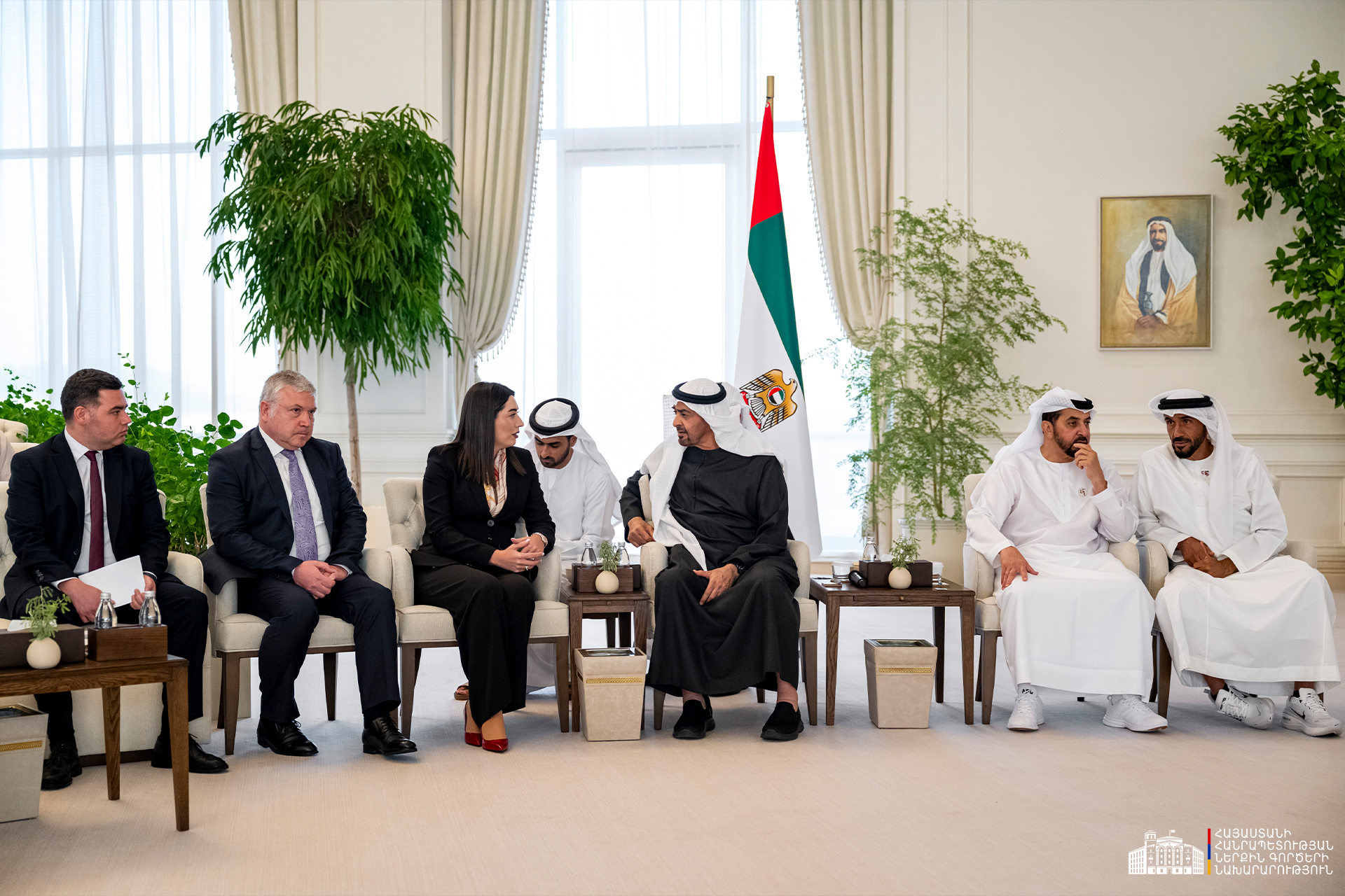 Սեպտեմբերի 30-ին աշխատանքային այցով Արաբական Միացյալ Էմիրություններում գտնվող Հայաստանի ներքին գործերի նախարար Արփինե Սարգսյանը հանդիպել է ԱՄԷ նախագահ շեյխ Մուհամեդ բեն Զայեդ Ալ Նահյանի հետ։