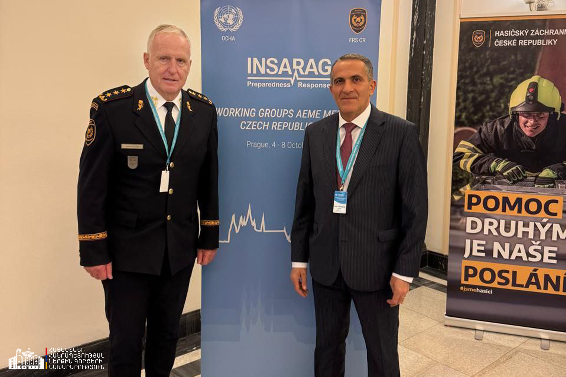 ՆԳՆ Փրկարար ծառայության տնօրեն-ներքին գործերի նախարարի տեղակալ Կամո Ցուցուլյանի գլխավորած պատվիրակությունը Չեխիայի Հանրապետության Պրահա քաղաքում մասնակցել է միջազգային քաղաքային որոնողափրկարարական խորհրդատվական խմբի Աֆրիկա-Եվրոպա-Միջին Ասիա (AEME) տարածաշրջանի աշխատանքային խմբի տարեկան հանդիպմանը, որի ընթացքում ամփոփվել են 2025 թվականին կատարված աշխատանքները։