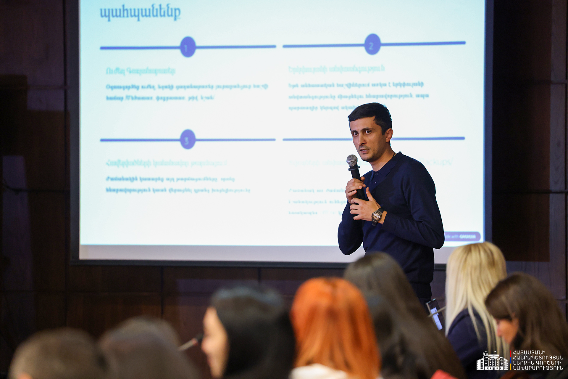 ՆԳ նախարարի մամուլի քարտուղար, ՆԳ նախարարության հանրային հաղորդակցության և իրազեկման վարչության պետ Նարեկ Սարգսյանը մասնակիցներին ծանոթացրել է վերապատրաստման ծրագրին և հիմնական ուղղություններին։