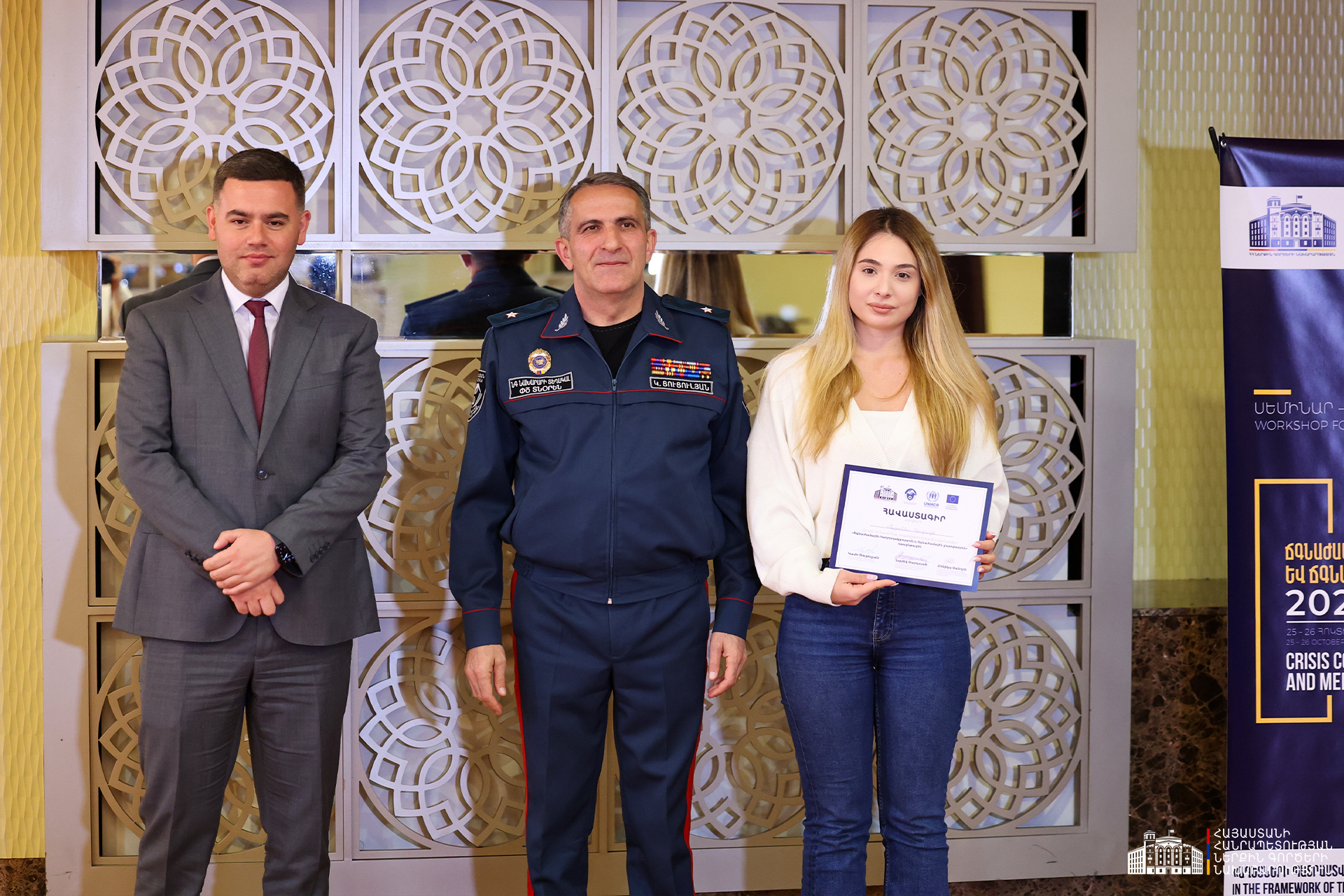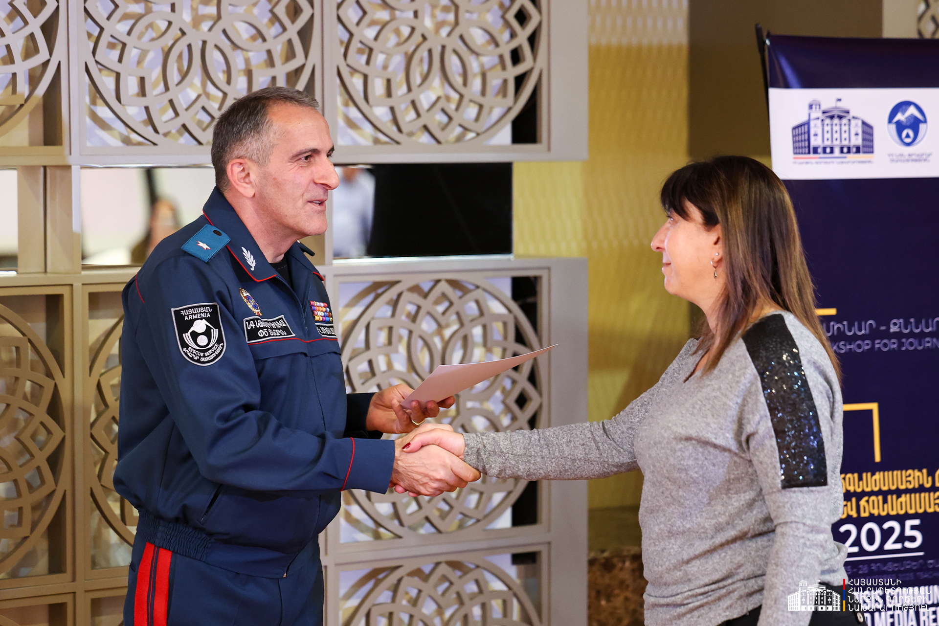 Փրկարար ծառայության Ճգնաժամային կառավարման ազգային կենտրոնի տեղեկատվության ապահովման և վիճակագրության բաժնի պետ Լիաննա Աբրահամյանը դասընթացի մասնակիցներին ներկայացրել է ճգնաժամային հաղորդակցության մոդելն ու ընթացակարգերը. «Ներկայացվող օրինակների միջոցով ուսումնասիրել ենք, թե զանգվածային լրատվամիջոցները ինչպես կարող են դառնալ արդյունավետ և պատասխանատու գործընկերներ՝ կիրառելով ամբողջ գործիքակազմը , որոնք ուսուցանել ենք վերապատրաստման դասընթացների ընթացքում»։