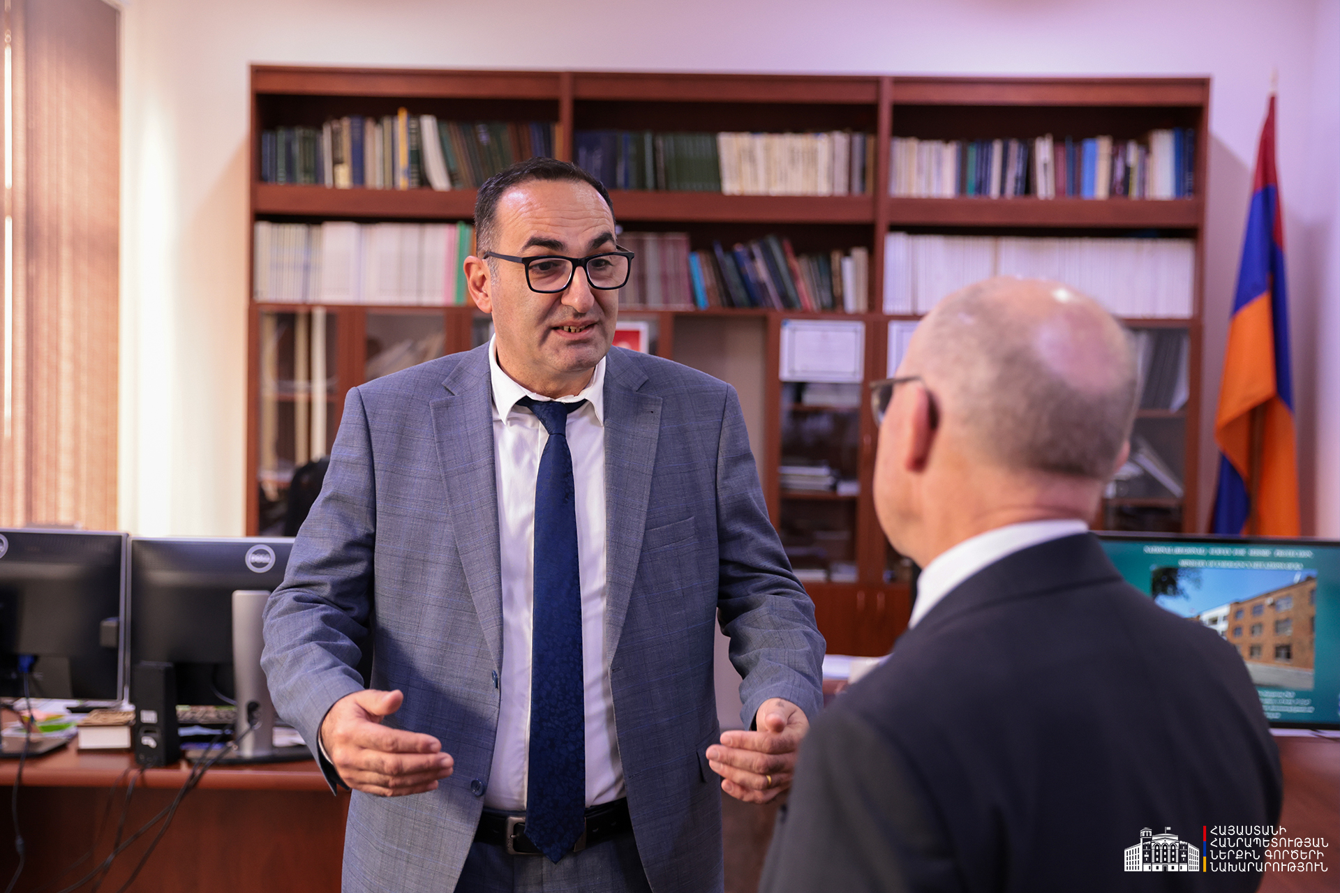Ծառայության տնօրեն Սոս Մարգարյանը հյուրերին ներկայացրել է Հայաստանի ակտիվ խզվածքային գոտիները, Սպիտակի երկրաշարժի դասերն ու սեյսմիկ խոցելիության նվազեցմանն ուղղված քայլերը, ինչպես նաև ՊՈԱԿ-ի ընթացիկ ծրագրերը, սարքավորումների արդիականացման գործընթացը, արտերկրում երիտասարդ մասնագետների վերապատրաստման հեռանկարները։
