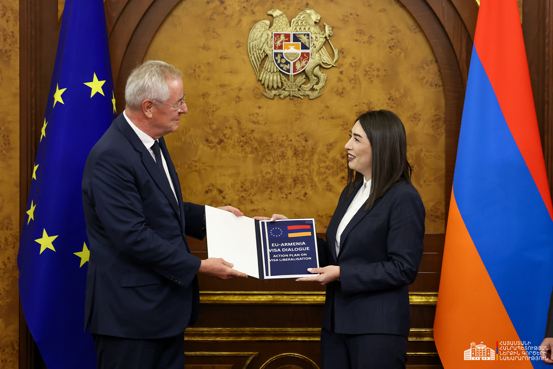 On November 5, Johannes Luchner, the Deputy Director-General for Directorate-General for Migration and Home Affairs of the European Commission during his visit to Armenia officially handed over the EU-Armenia Visa Liberalization Action Plan to Arpine Sargsyan, and the Minister of Internal Affairs of the Republic of Armenia, and Senior Official for the Visa Liberalisation Dialogue on the Armenian side․