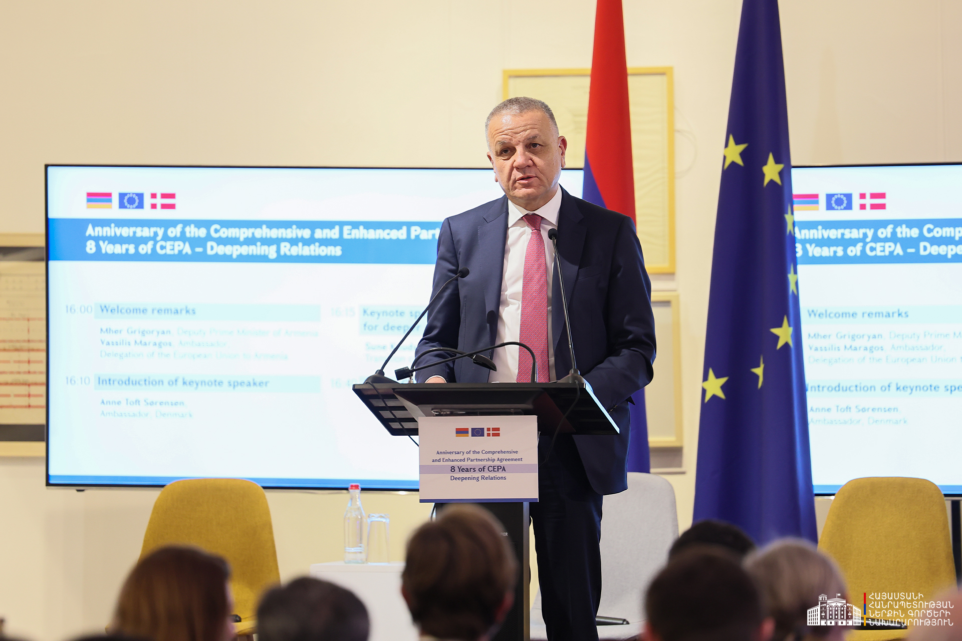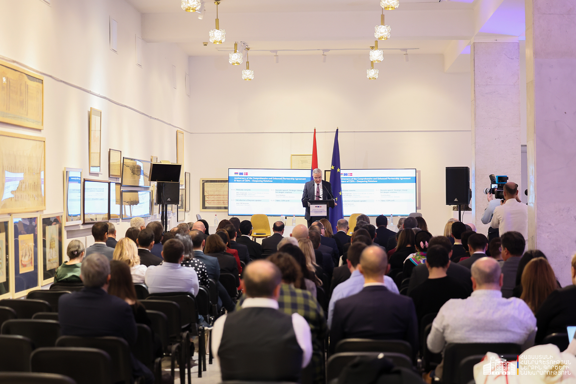 Ողջույնի խոսքով հանդես են եկել ՀՀ փոխվարչապետ Մհեր Գրիգորյանը և Հայաստանում ԵՄ պատվիրակության ղեկավար, դեսպան Վասիլիս Մարագոսը՝ կարևորելով Համաձայնագրի (CEPA) դերը Հայաստանում իրականացվող բարեփոխումների օրակարգում։