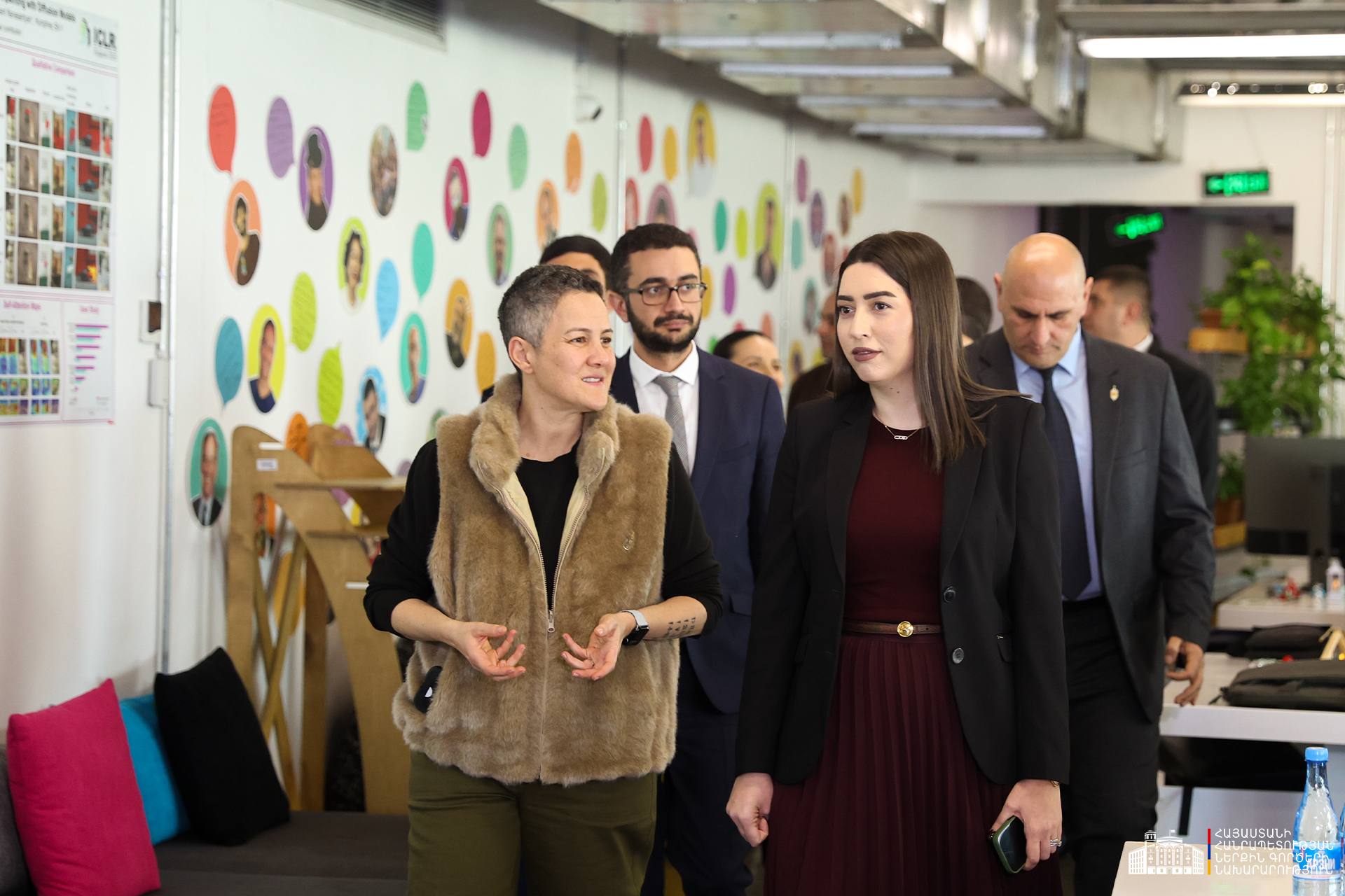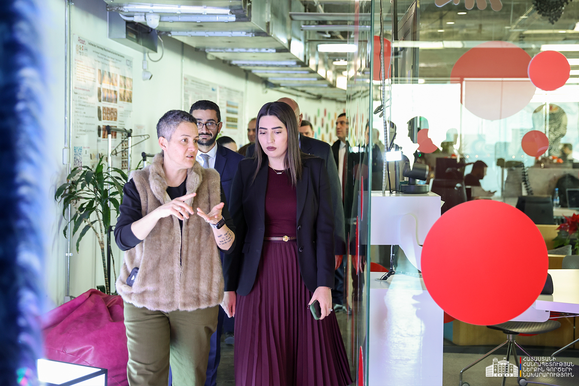 Արփինե Սարգսյանը շրջել է գրասենյակում, ծանոթացել ընկերության ստեղծարար ու տեխնոլոգիական հնարավորություններին, նորարարական լուծումներին։ Անդրադարձ է կատարվել Պետություն-մասնավոր գործընկերության ծրագրի շրջանակում ՆԳ նախարարության հետ համագործակցությանը, ամփոփվել են իրականացված աշխատանքներն ու նախանշվել հետագա քայլերը։