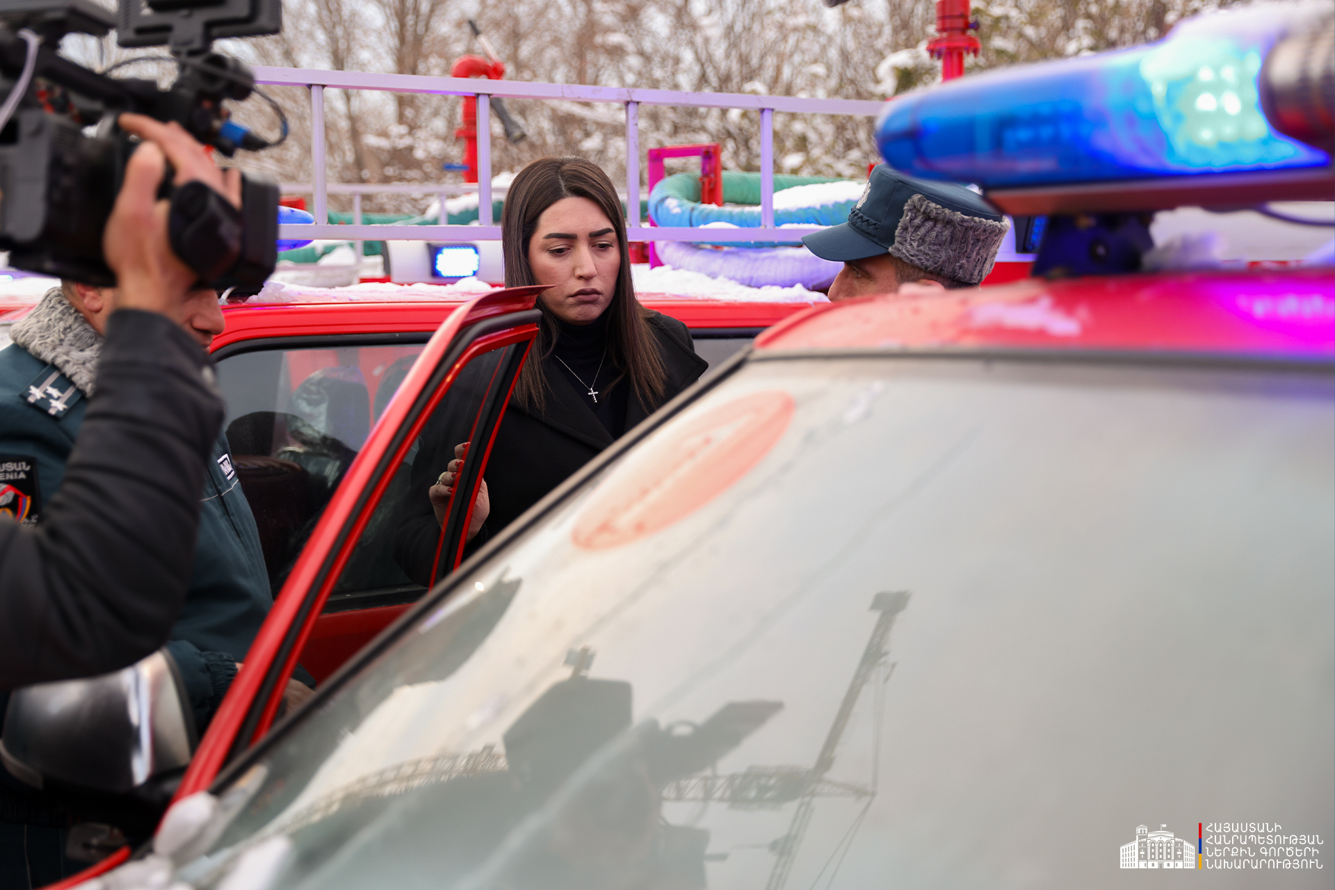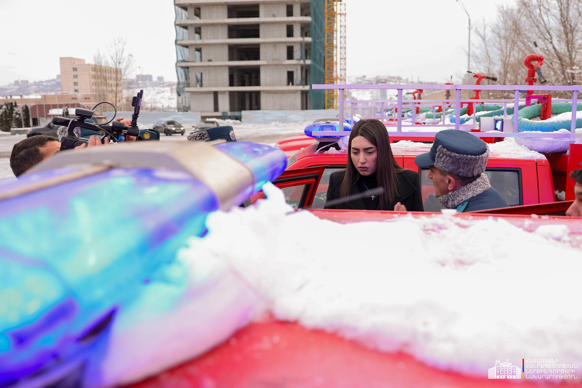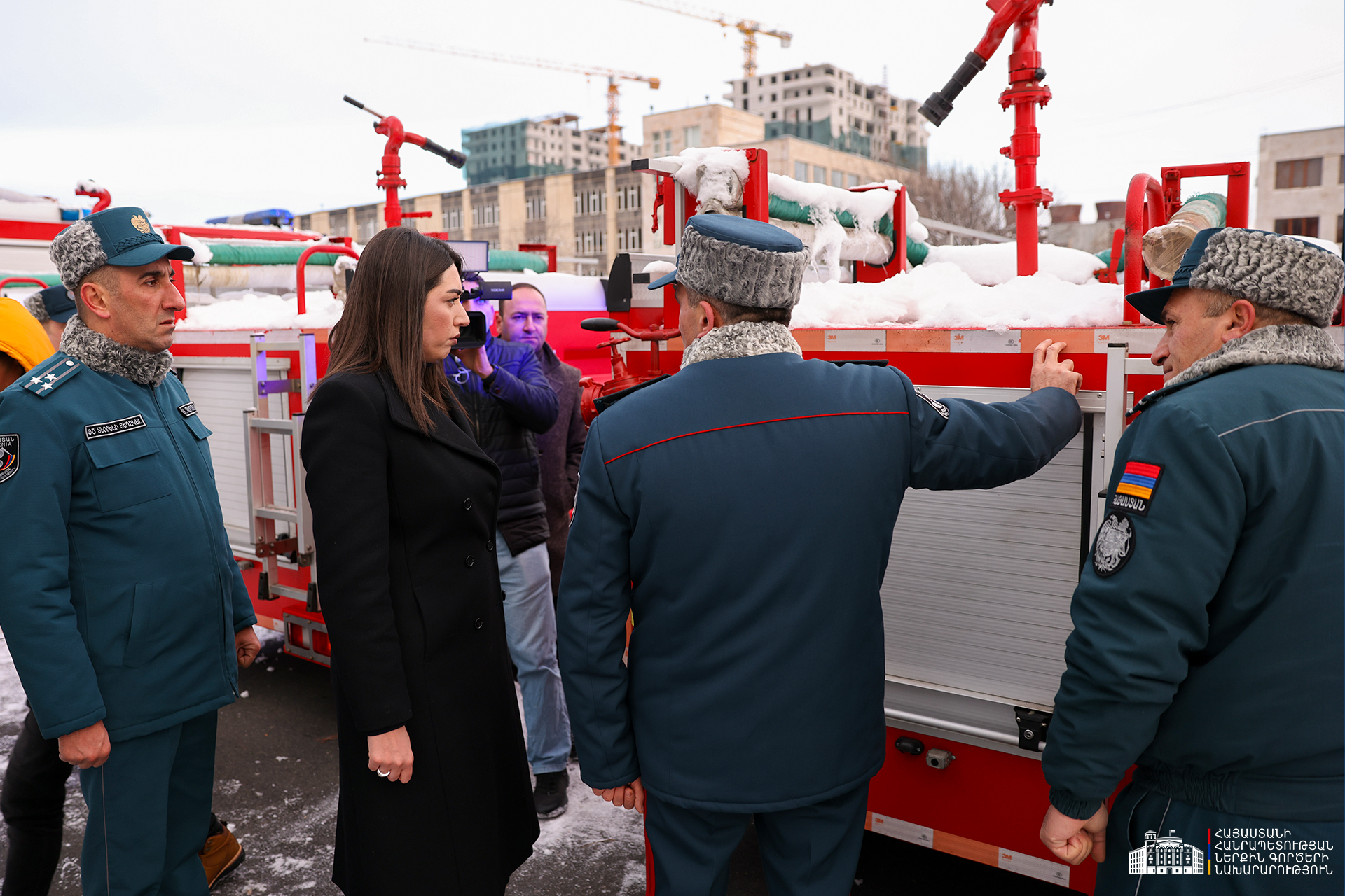 ՆԳ նախարար Արփինե Սարգսյանը ՓԾ տնօրեն-ՆԳ նախարարի տեղակալ Կամո Ցուցուլյանի ուղեկցությամբ ծանոթացել է Ծառայությանը տրամադրված հրշեջ-փրկարարական նոր տեխնիկային։ Նախարարին է ներկայացվել նաև հրշեջ-փրկարարական գույք-սարքավորումների, հատուկ տեխնիկայի և տեխնիկական միջոցների ամբողջական համալիրը։