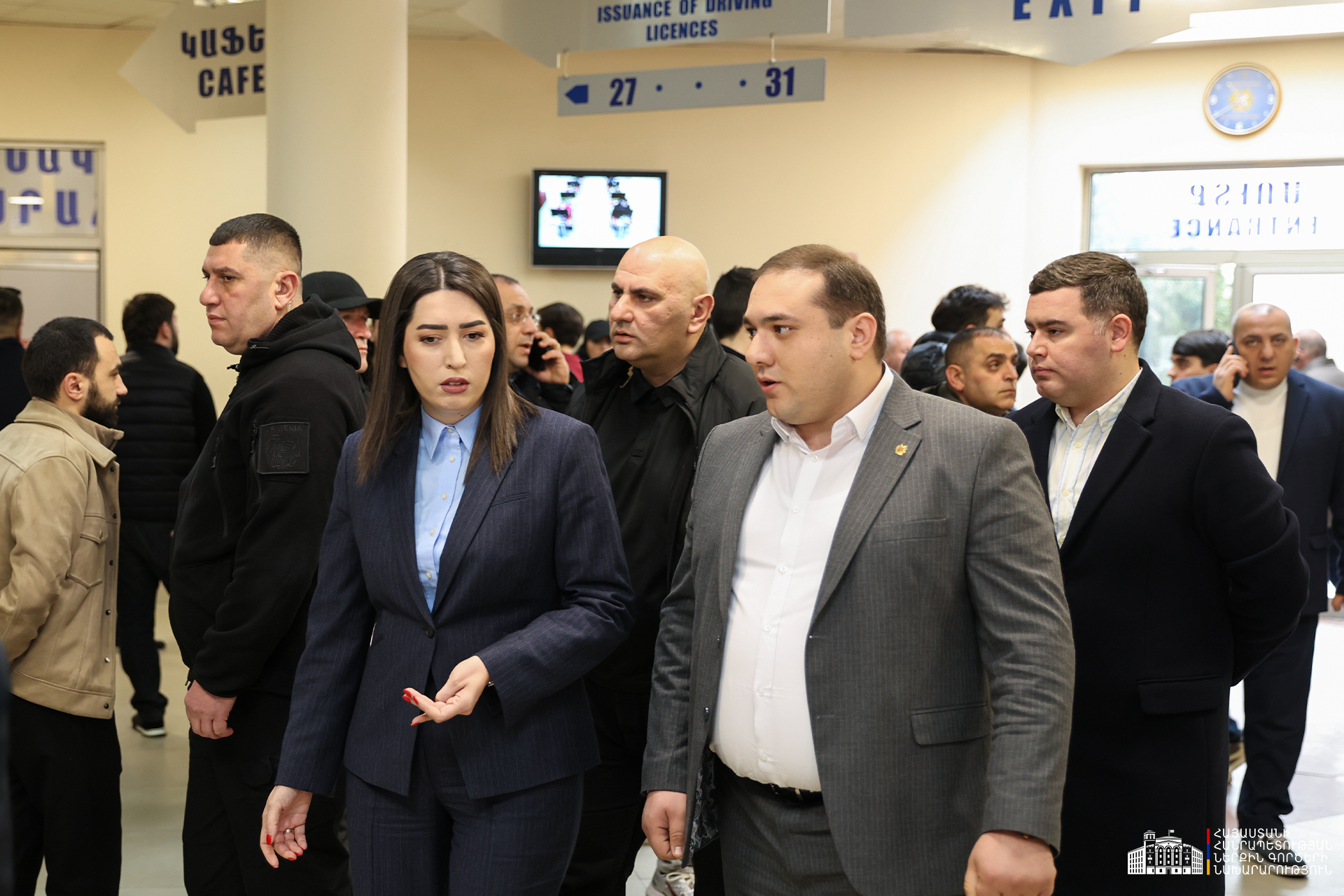 Նախարարը հետևել է վարորդական իրավունքի վկայական ստանալու տեսական և գործնական քննությունների ընթացքին, հաշվառման համարանիշների տրամադրման գործընթացին։ Առանձնահատուկ ուշադրություն է դարձվել հերթերի կանոնակարգմանն ու սպասարկման արդյունավետության բարձրացմանը միտված թվայնացման աշխատանքներին։