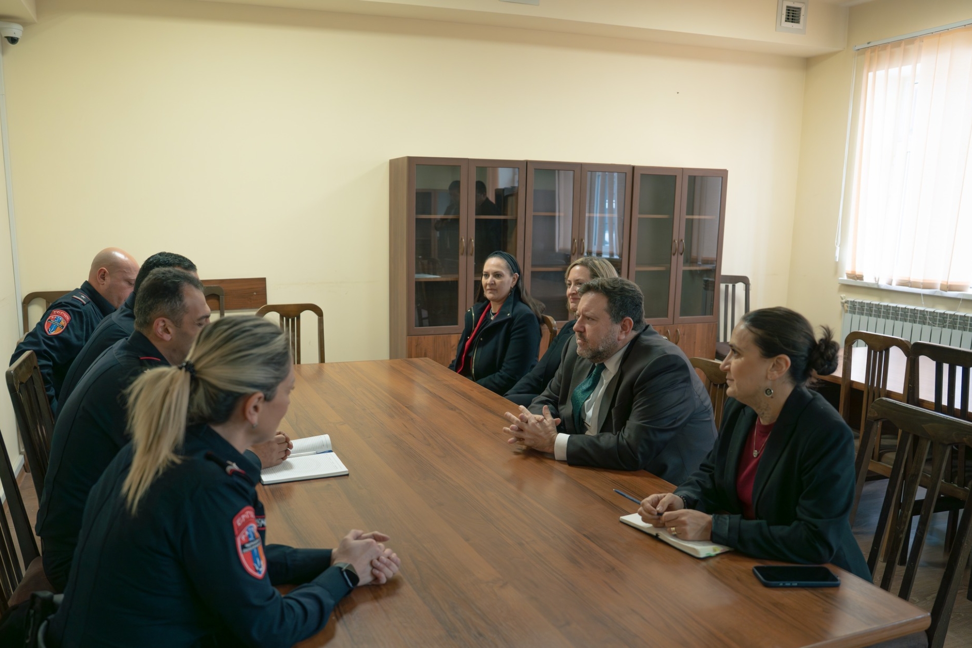 Դեյվիդ Ալենն այցելել է նաև ՆԳՆ 112 օպերատիվ կառավարման կենտրոնի ահազանգերի կառավարման վարչության Շիրակի բաժանմունք։