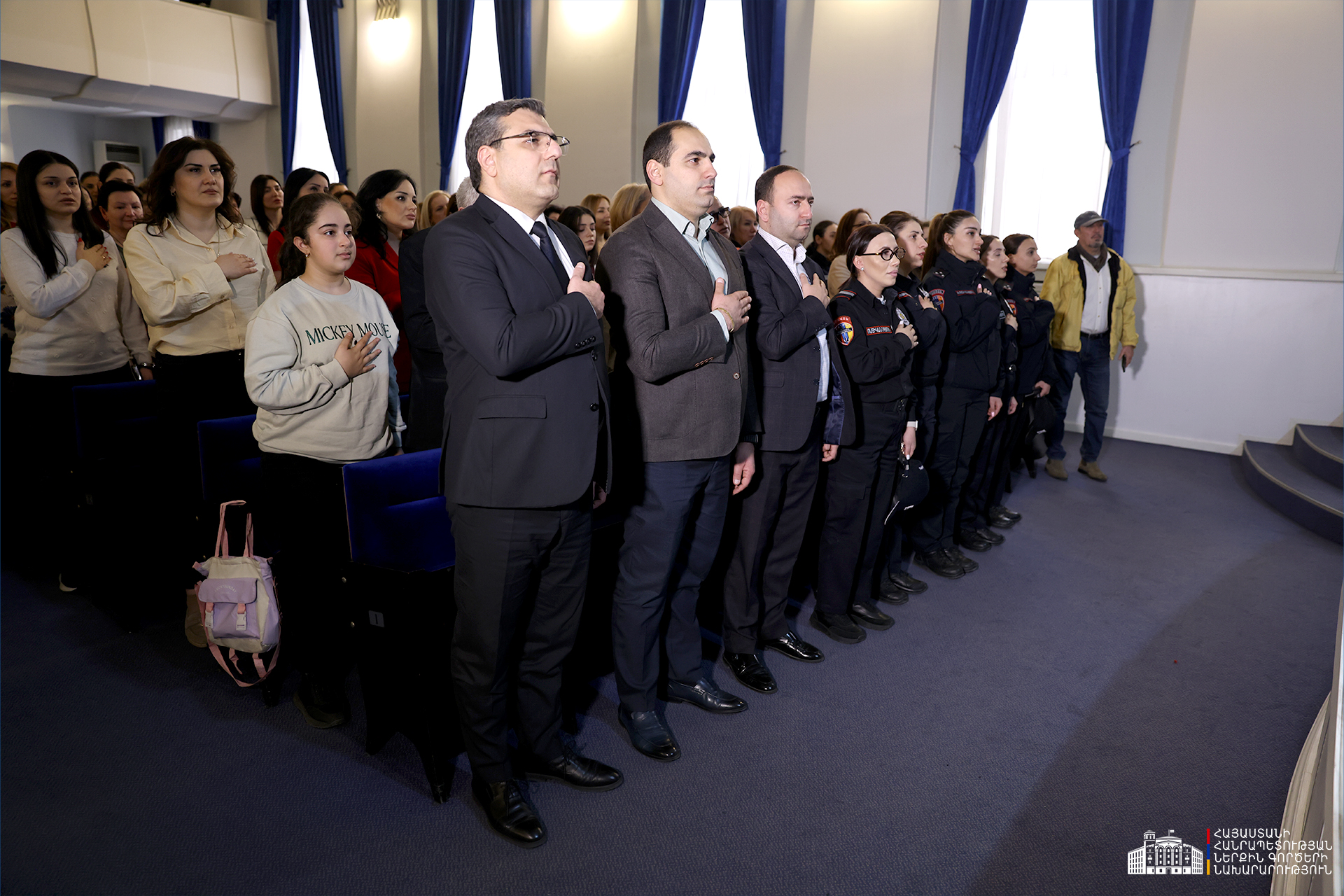 ՆԳ նախարարի տեղակալ Արմեն Մկրտչյանն իր ելույթում անփոխարինելի համարելով կանանց դերը նախարարության և ենթակա ծառայությունների կայացման ու զարգացման գործում՝ ընդգծել է, որ նրանք բարձր պատասխանատվությամբ ու նվիրումով են իրականացնում իրենց մասնագիտական առաքելությունը՝ պատվով հաղթահարելով ծառայության բարդություններն ու մարտահրավերները: