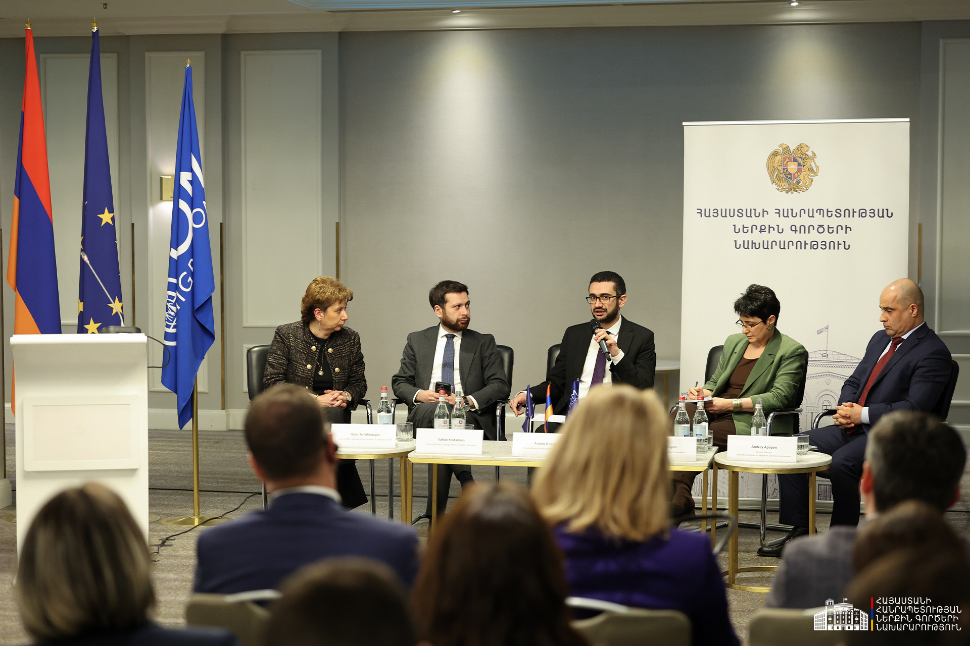 Պանելային քննարկմանը ելույթներով հանդես են եկել նաև ՆԳ նախարարի տեղակալ Արմեն Ղազարյանը, ԱԳ նախարարի տեղակալ Վահան Կոստանյանը, Միգրացիայի միջազգային կազմակերպության գրասենյակի ղեկավար Իլոնա Տեր-Մինասյանը, Ժողովրդավարության զարգացման հիմնադրամի տնօրեն Նաիրա Սուլթանյանը և Միգրացիոն քաղաքականության մշակման միջազգային կենտրոնի գրասենյակի ղեկավար Անդրեյ Ափոյանը։