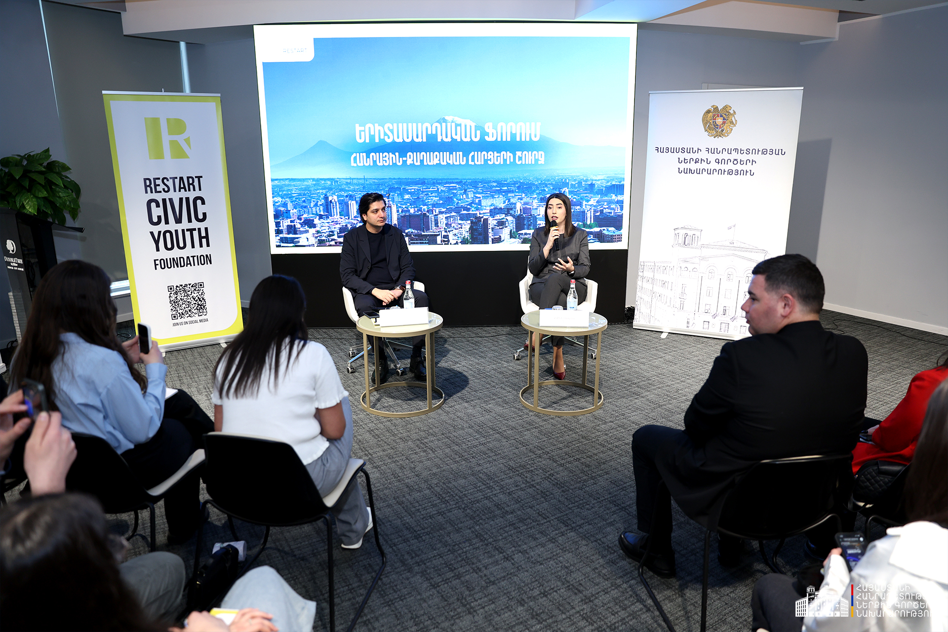 Վիզաների ազատականացման գործընթացի զարգացումները, ՆԳ նախարարության ոլորտային բարեփոխումները և կանանց ներգրավվածության մարտահրավերներն էին Երիտասարդական ֆորումի քննարկման առանցքում։ Մարտի 28-ին «Ռեստարտ» քաղաքացիական-երիտասարդական հիմնադրամի նախաձեռնած հանդիպումը համախմբել էր մայրաքաղաքի և մարզերի ավելի քան 200 երիտասարդի։ Երիտասարդական ֆորումի բանախոսը ՆԳ նախարար Արփինե Սարգսյանն էր։