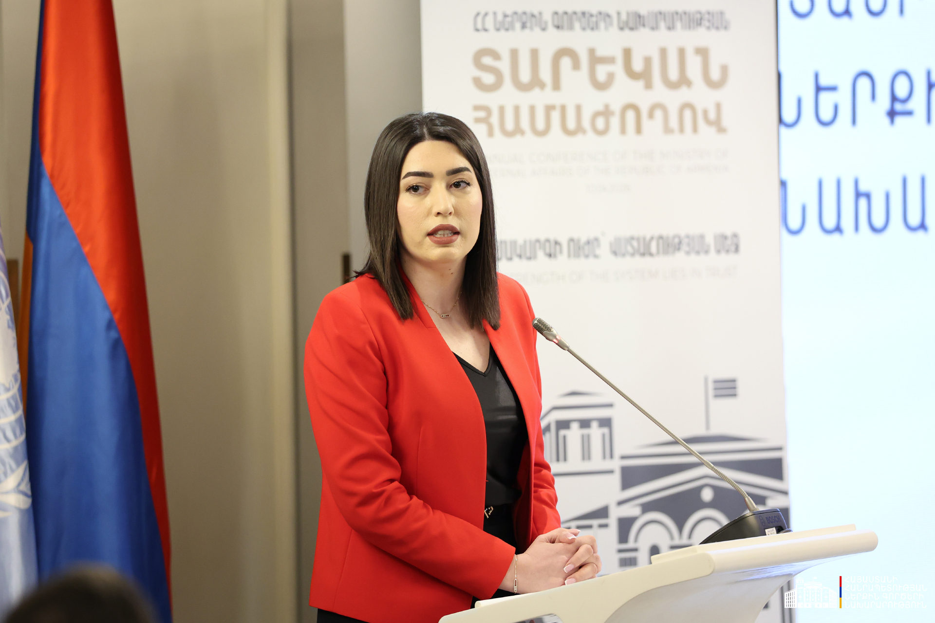 Անդրադառնալով համաժողովի խորագրին՝ ՆԳ նախարարն ընդգծել է, որ համակարգի նկատմամբ հանրային վստահության ամրապնդումն առաջնային նշանակություն ունի, քանի որ համակարգի ուժը վստահության մեջ է․ վստահություն թե՛ սեփական անձի, թե՛ համակարգի, թե՛ ժողովրդի նկատմամբ, և վստահություն՝ ժողովրդից եկող։