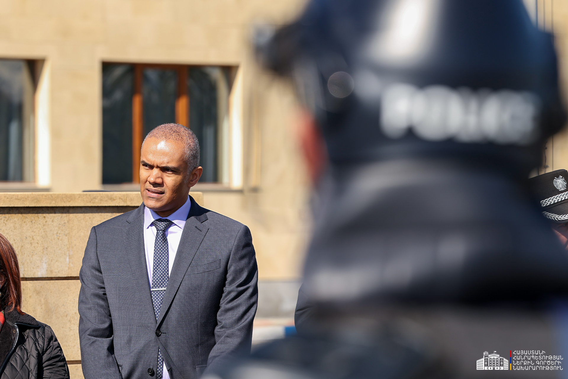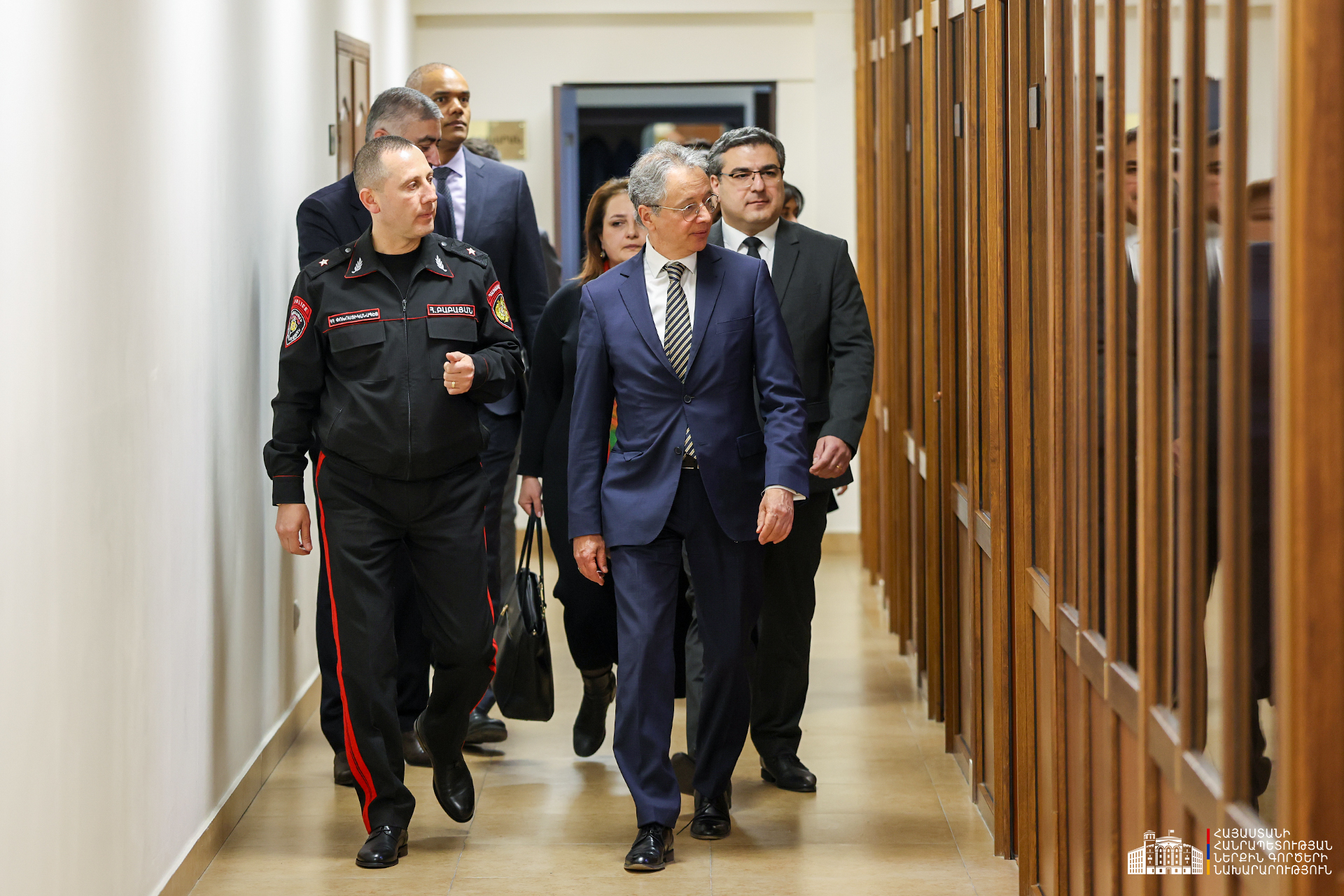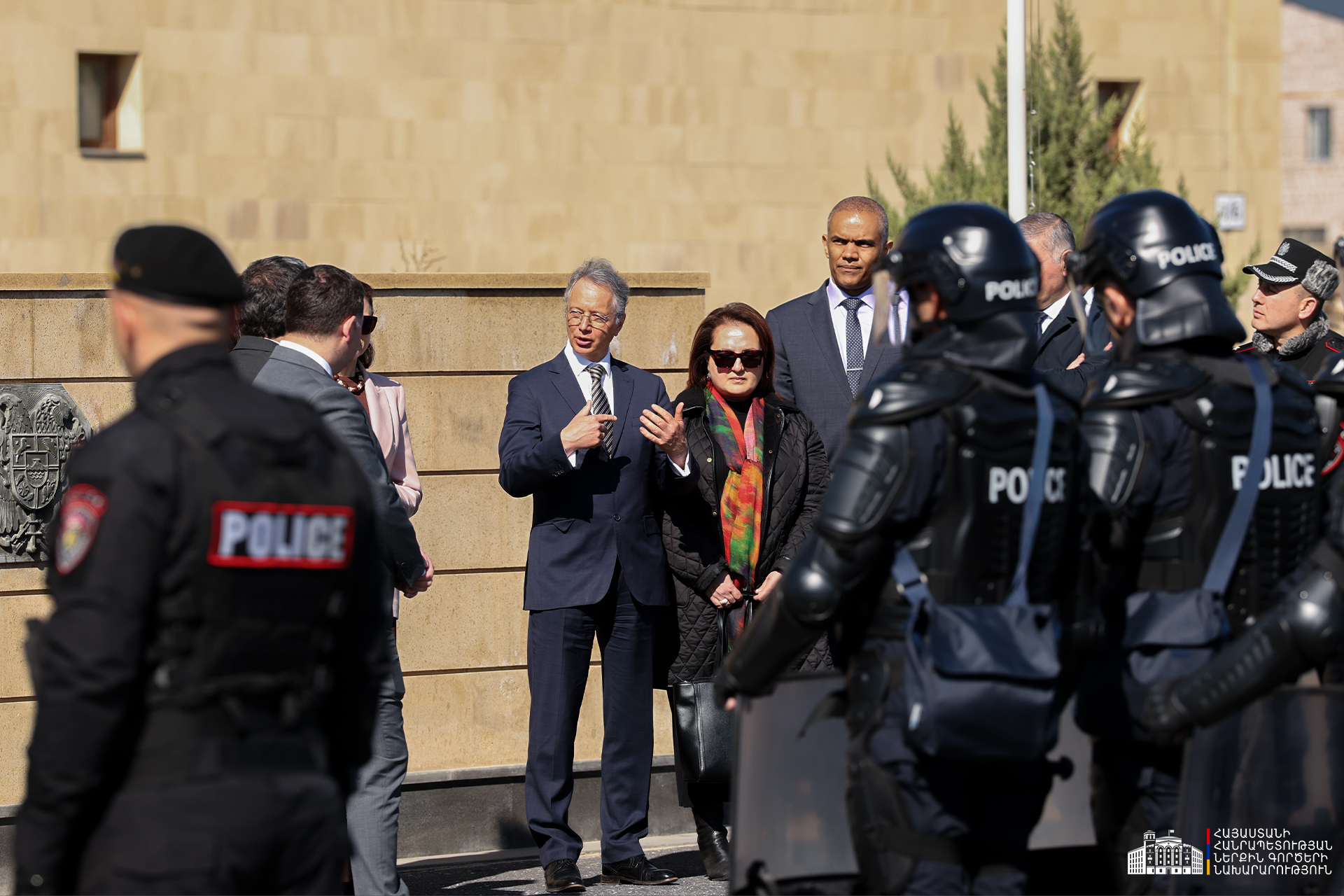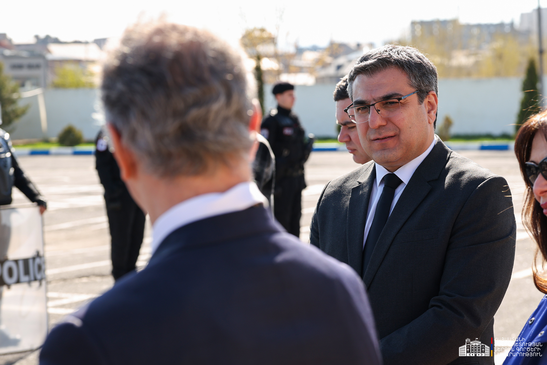 Պատվիրակության անդամները ՆԳ նախարարի տեղակալ Արմեն Մկրտչյանի ուղեկցությամբ շրջել են Ոստիկանության գվարդիայի վարչական համալիրում, ծանոթացել ստորաբաժանումների աշխատանքին։