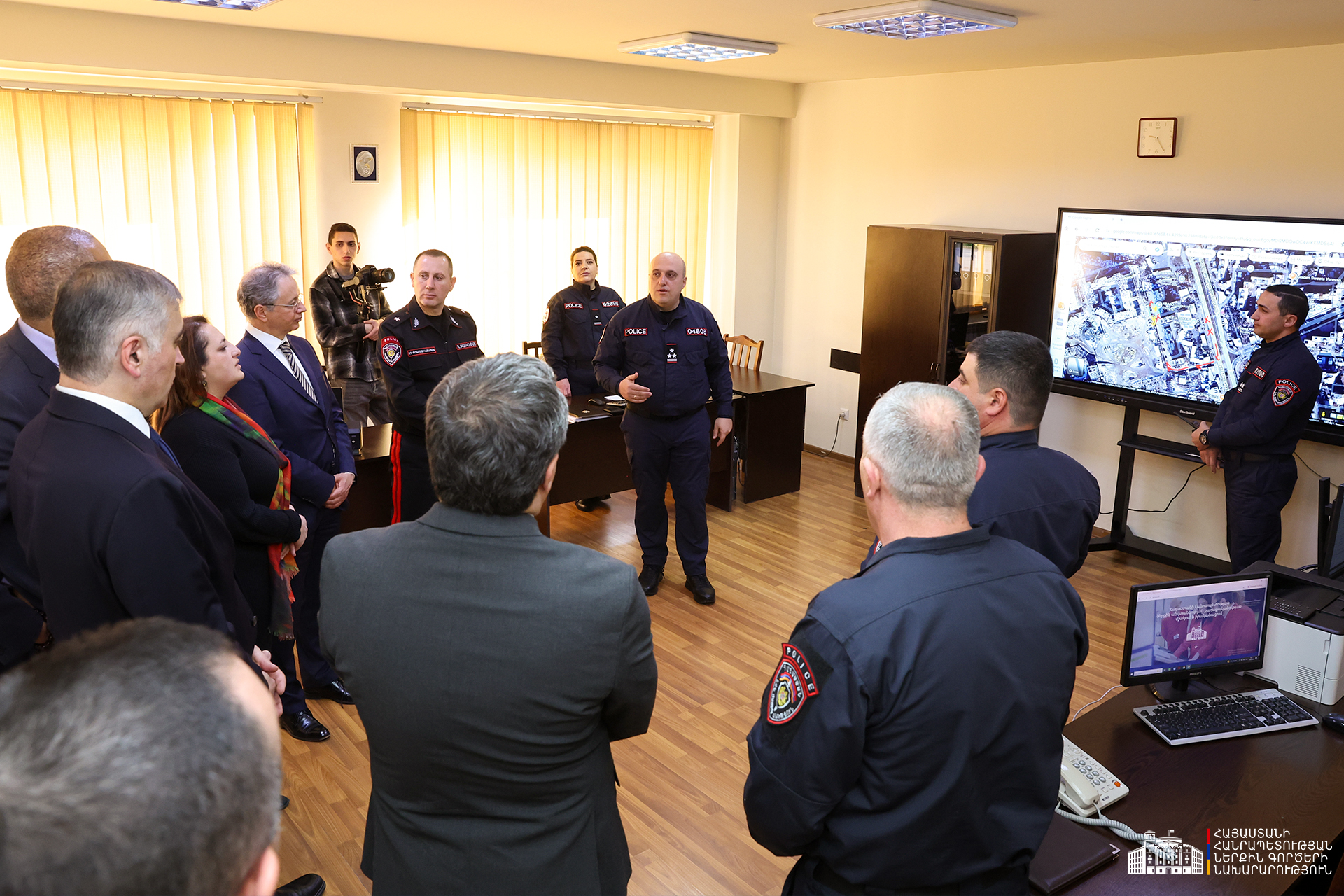 Պատվիրակության անդամները ծանոթացել են նաև հասարակական կարգի պահպանության ստորաբաժանման անձնակազմի պատրաստվածությանն ու համալրվածությանը։