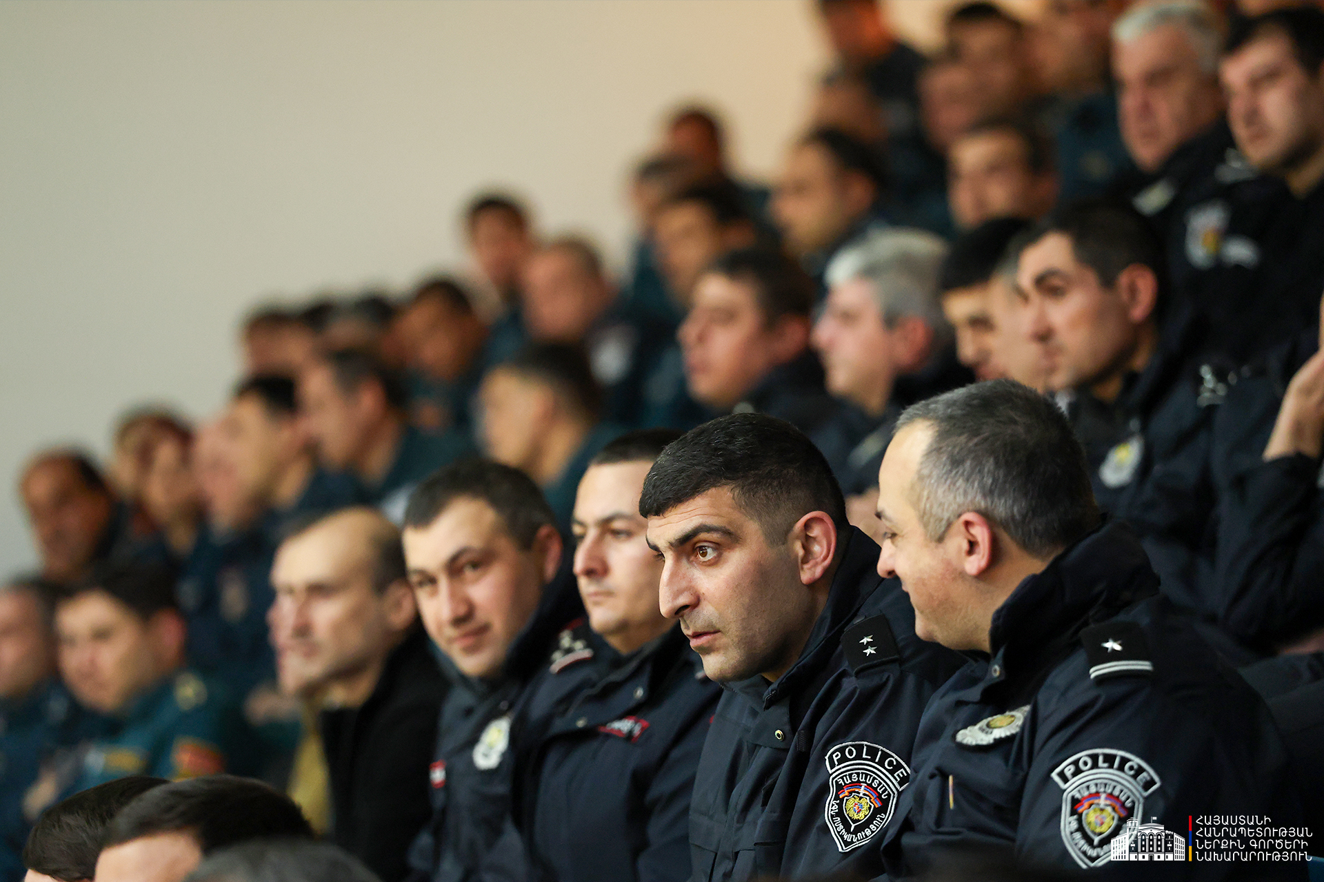 Ներկա էին ՆԳ նախարար Արփինե Սարգսյանը, նախարարության և ենթակա ծառայությունների ղեկավար կազմը։