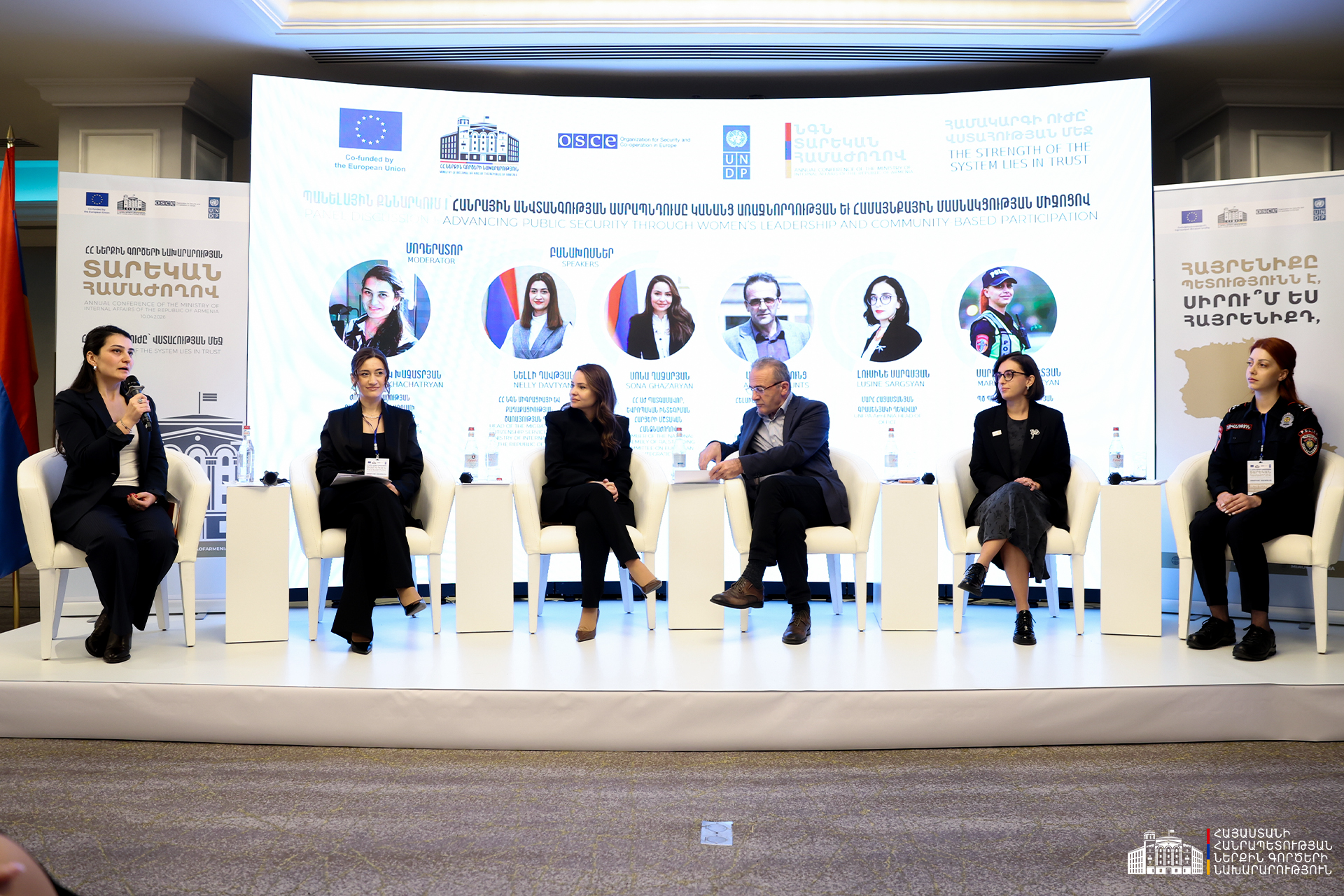 Համաժողովի շրջանակում կայացած «Հանրային անվտանգության ամրապնդումը կանանց առաջնորդության և համայնքային մասնակցության միջոցով» խորագրով պանելային քննարկման առանցքում ինստիտուցիոնալ և սոցիալական այն գործոնների վերլուծությունն էր, որոնք նպաստում են համակարգում կանանց դերի արժևորմանն ու հանրային վստահության ամրապնդմանը: