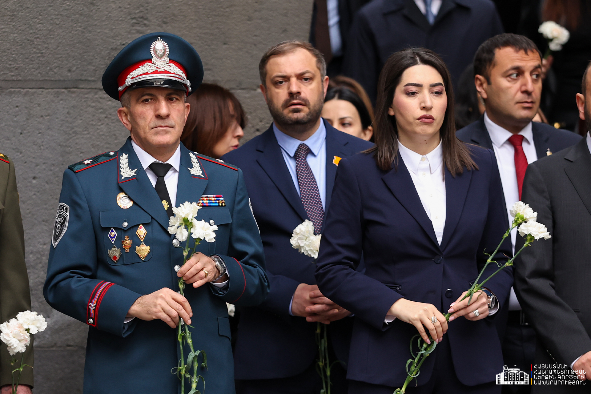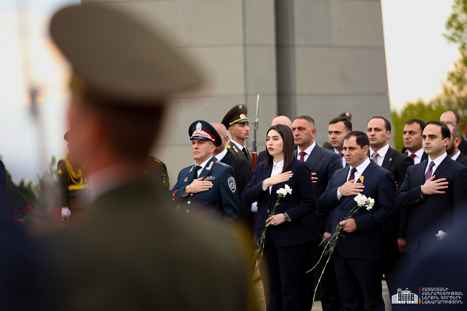 Ապրիլի 24-ին ՆԳ նախարար Արփինե Սարգսյանը, ոստիկանության պետ-ՆԳ նախարարի տեղակալ Կամո Ցուցուլյանը երկրի բարձրագույն ղեկավարության հետ Հայոց ցեղասպանության 111-րդ տարելիցի կապակցությամբ այցելել են Ծիծեռնակաբերդի հուշահամալիր, հարգանքի տուրք մատուցել Մեծ Եղեռնի 1,5 միլիոն զոհերի հիշատակին: