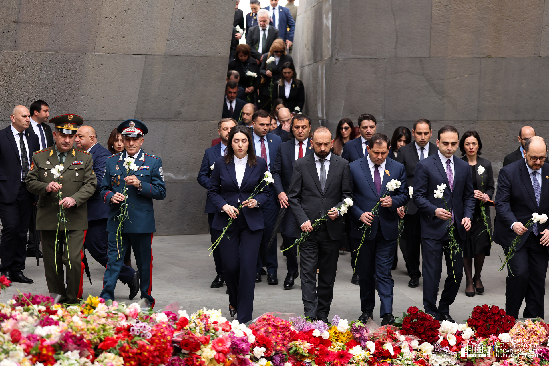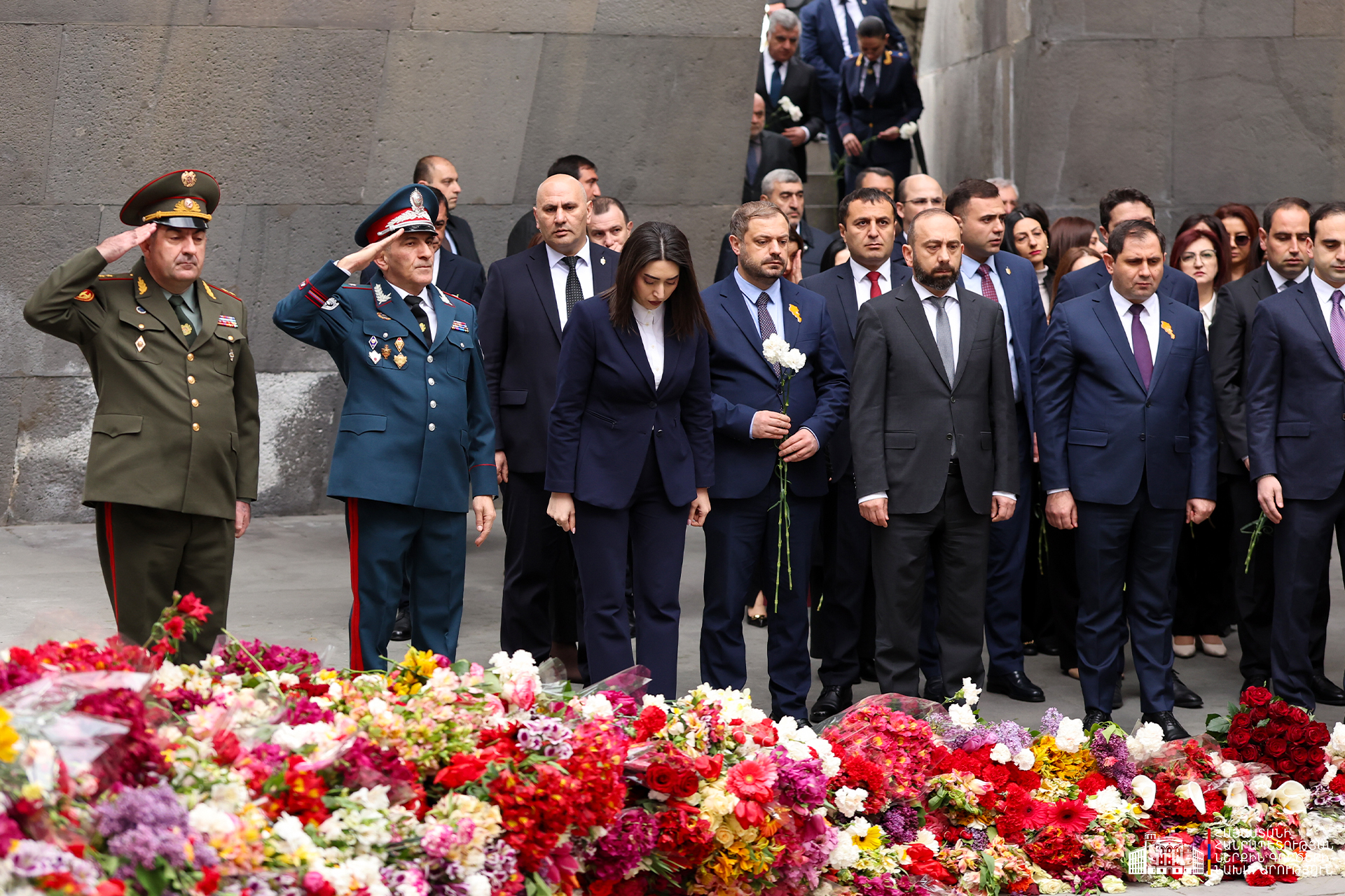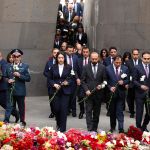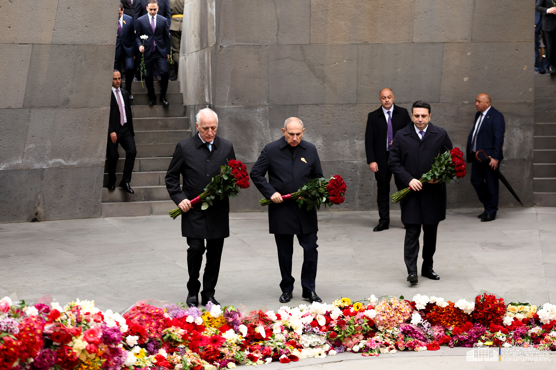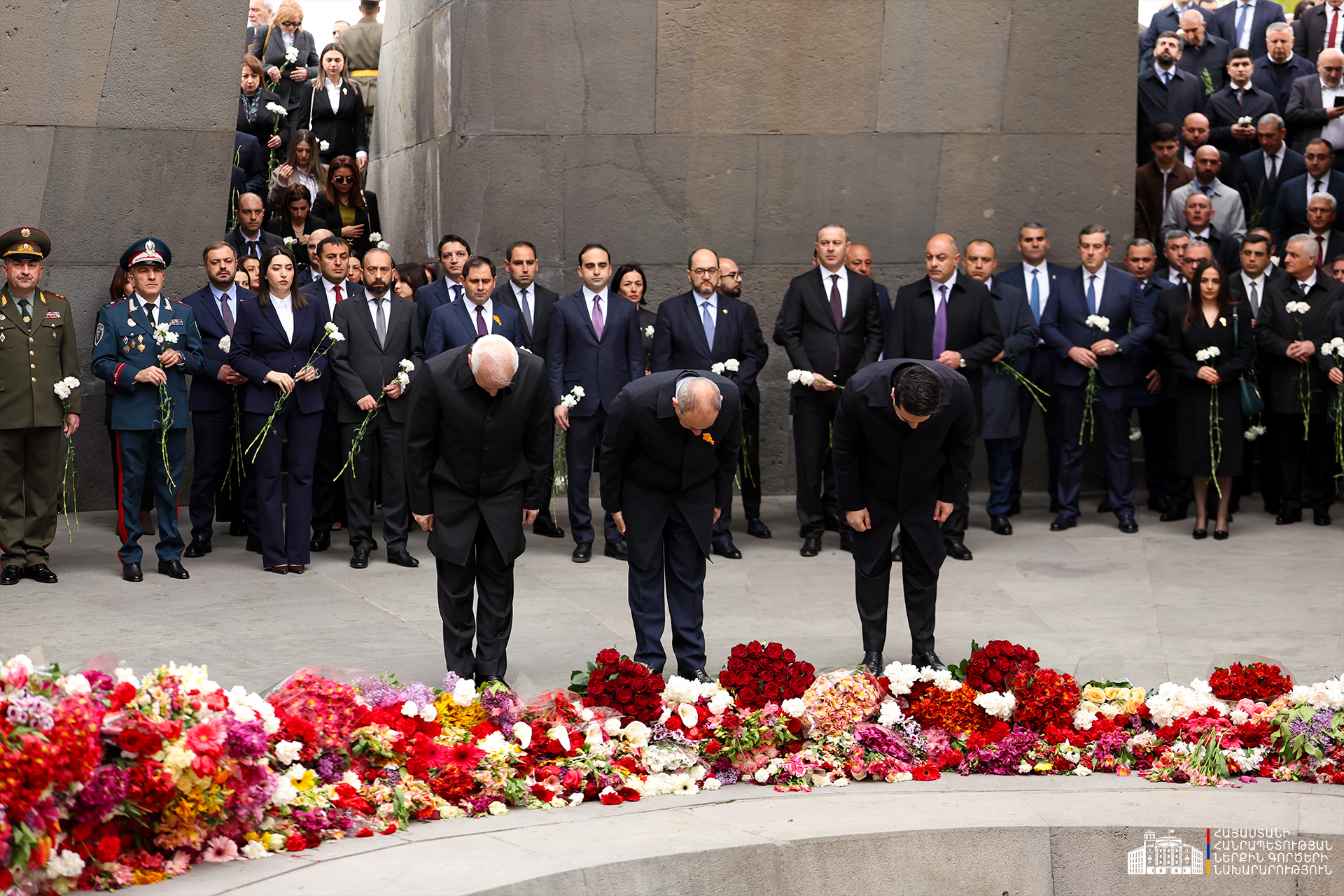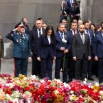 Երկրի բարձրագույն ղեկավարությունը ծաղկեպսակներ է դրել հուշակոթողին, ծաղիկներ խոնարհել Հայոց ցեղասպանության զոհերի հիշատակը հավերժացնող անմար կրակի մոտ: