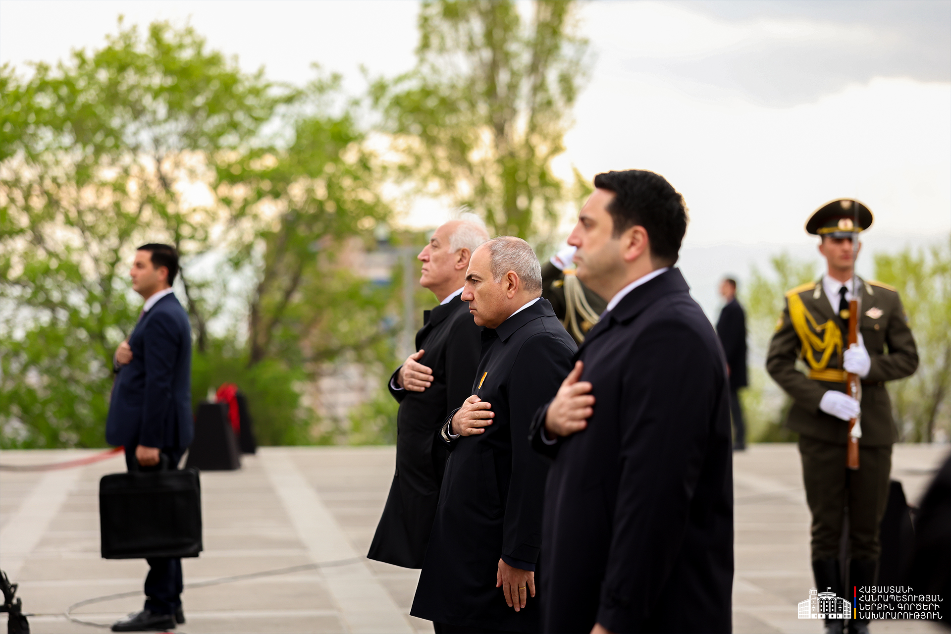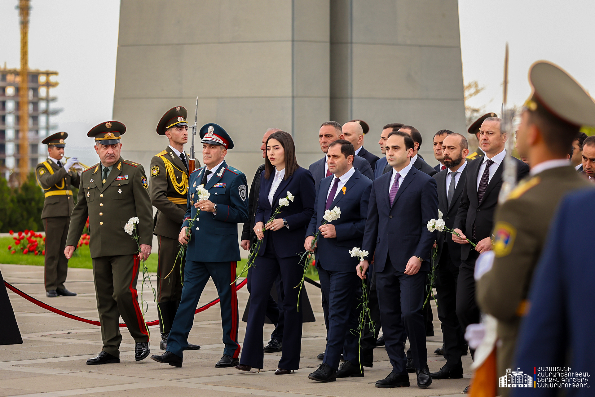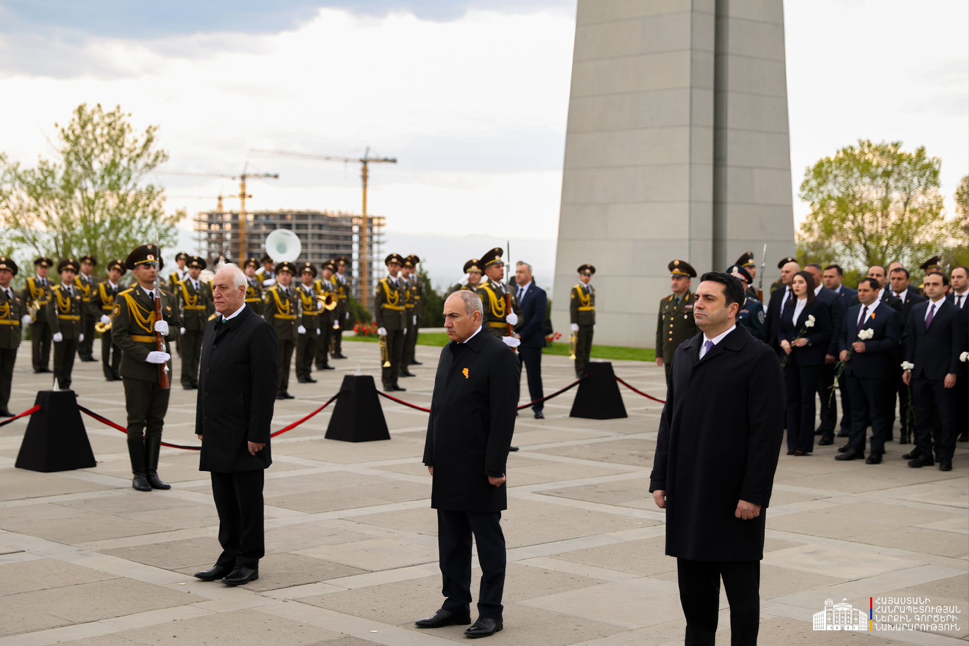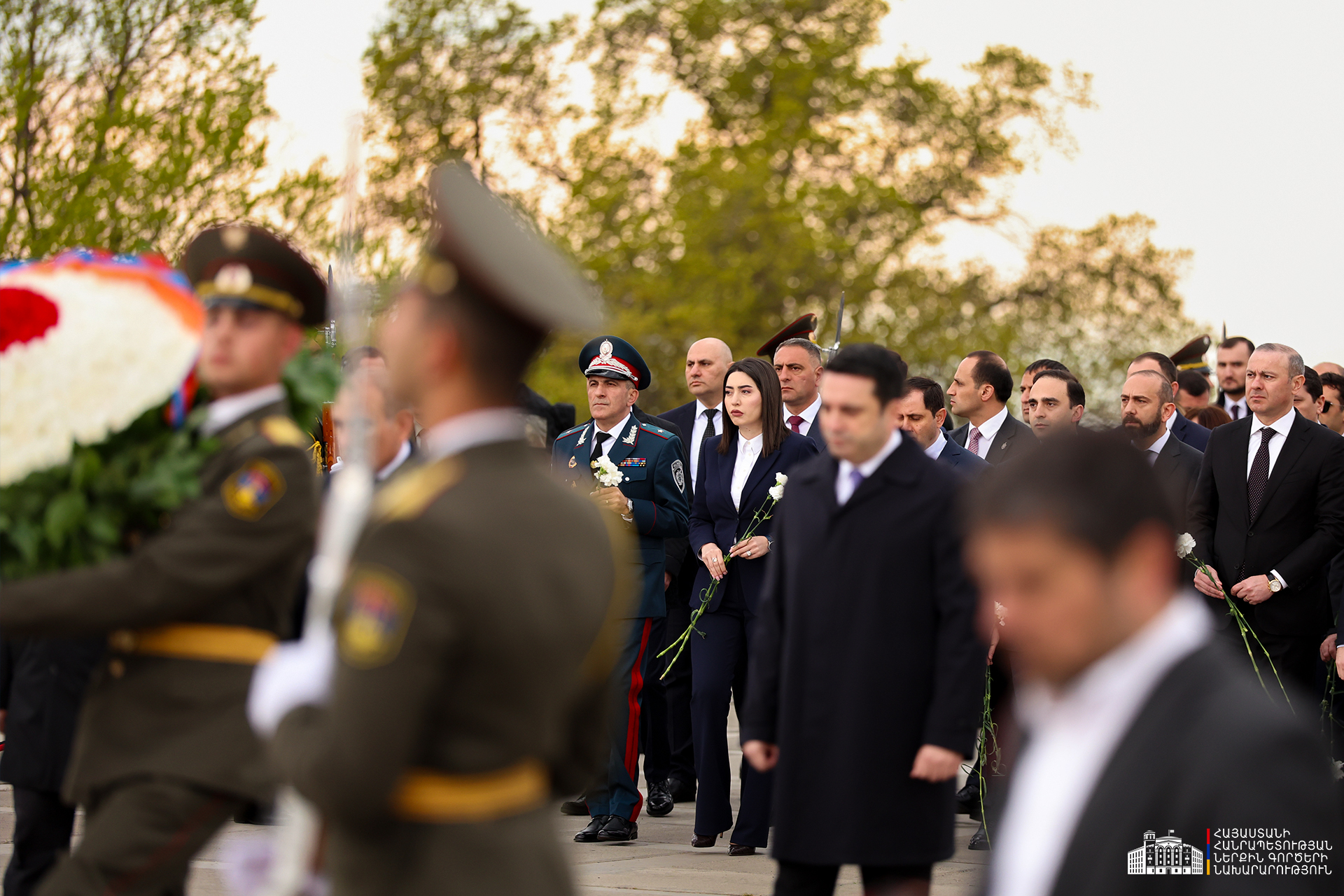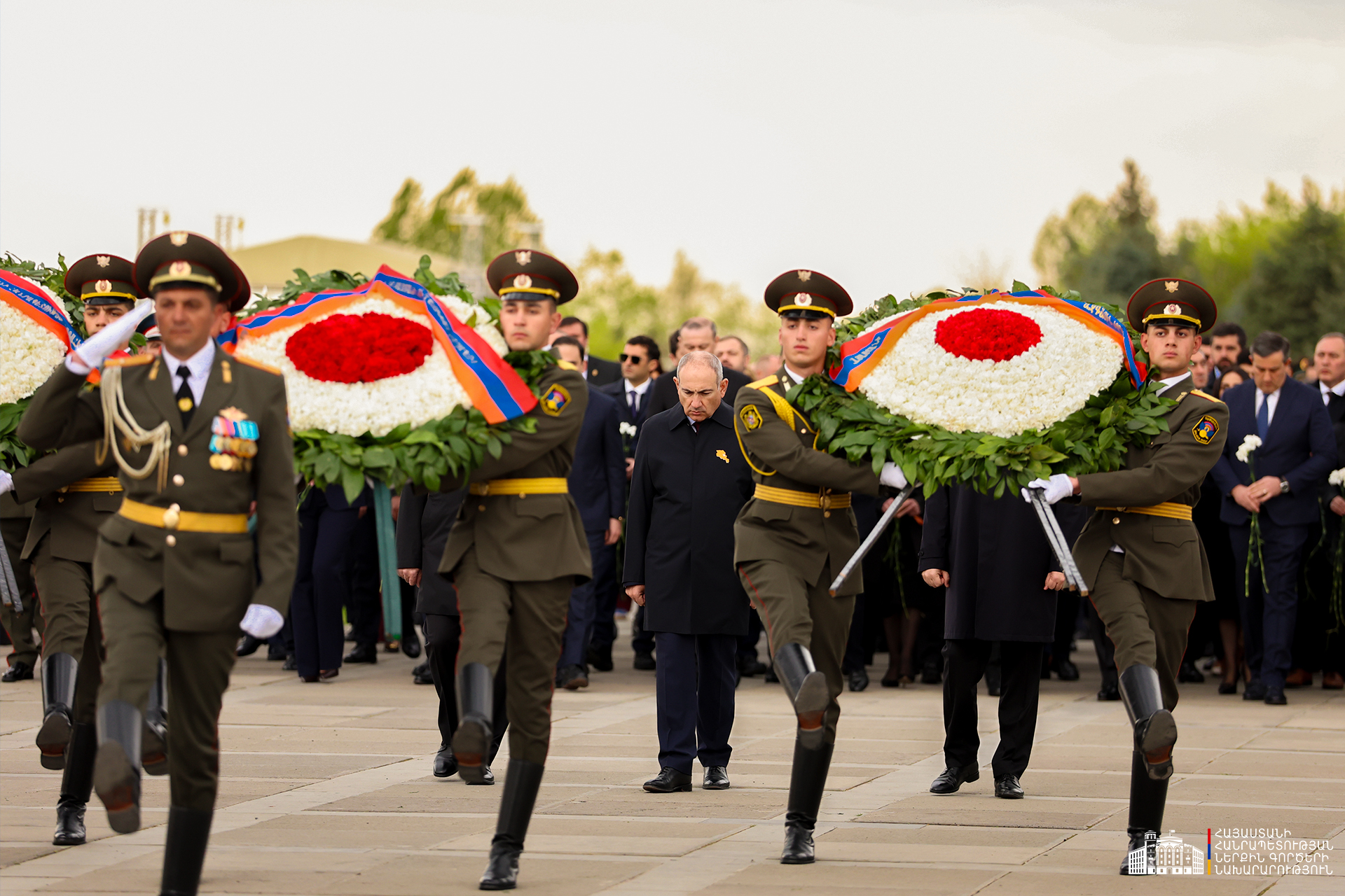 Երկրի բարձրագույն ղեկավարությունը ծաղկեպսակներ է դրել հուշակոթողին, ծաղիկներ խոնարհել Հայոց ցեղասպանության զոհերի հիշատակը հավերժացնող անմար կրակի մոտ: