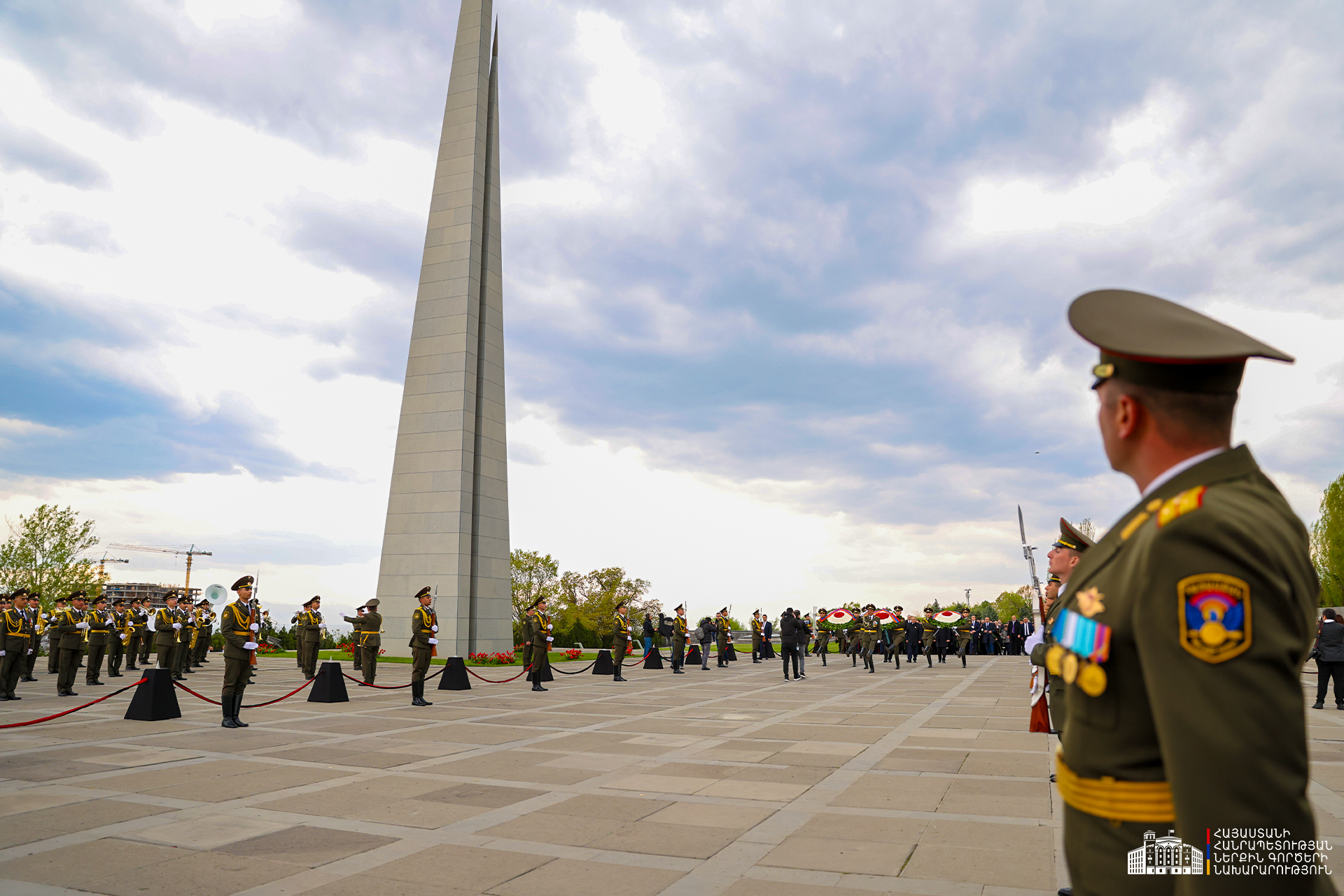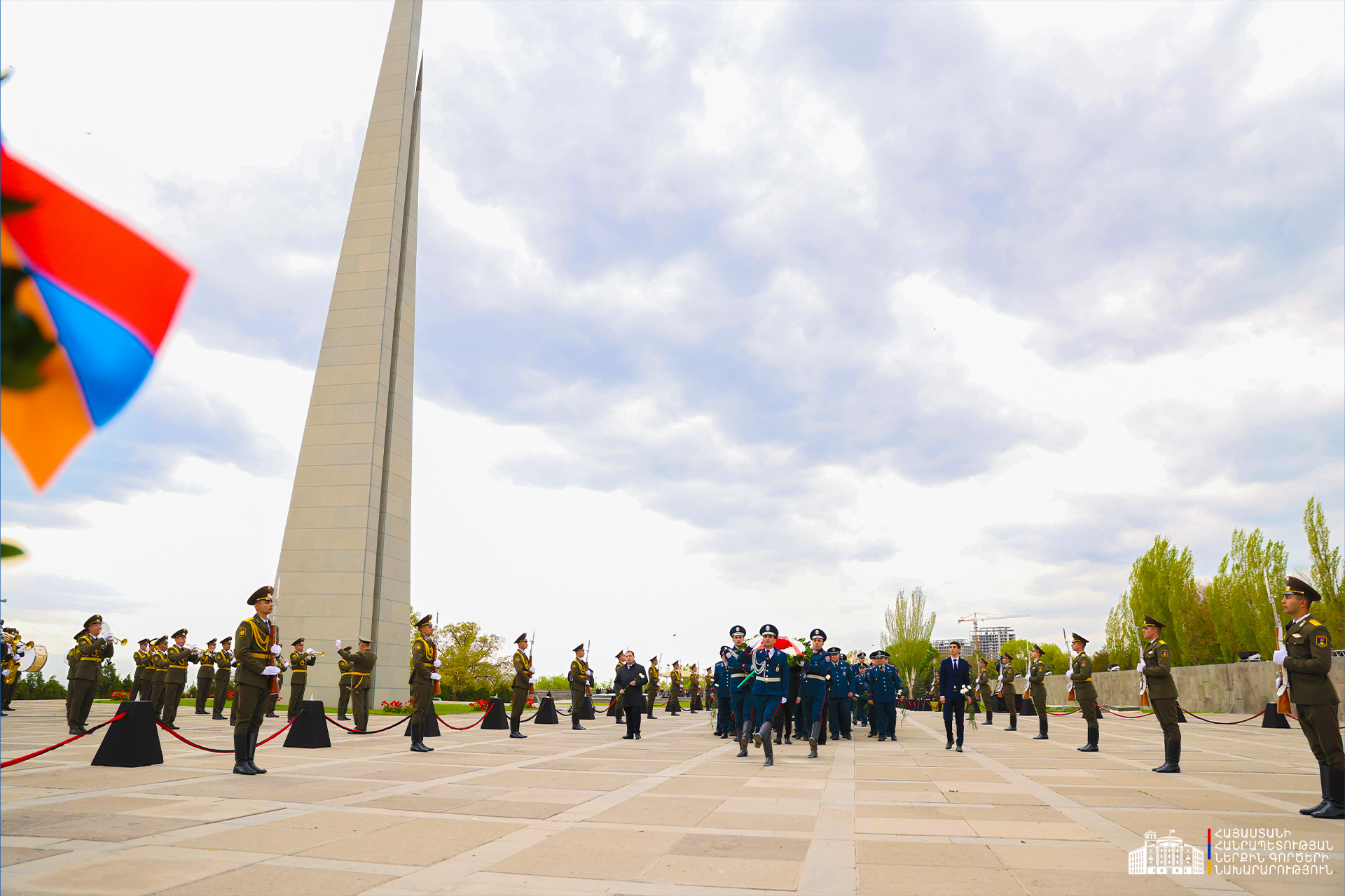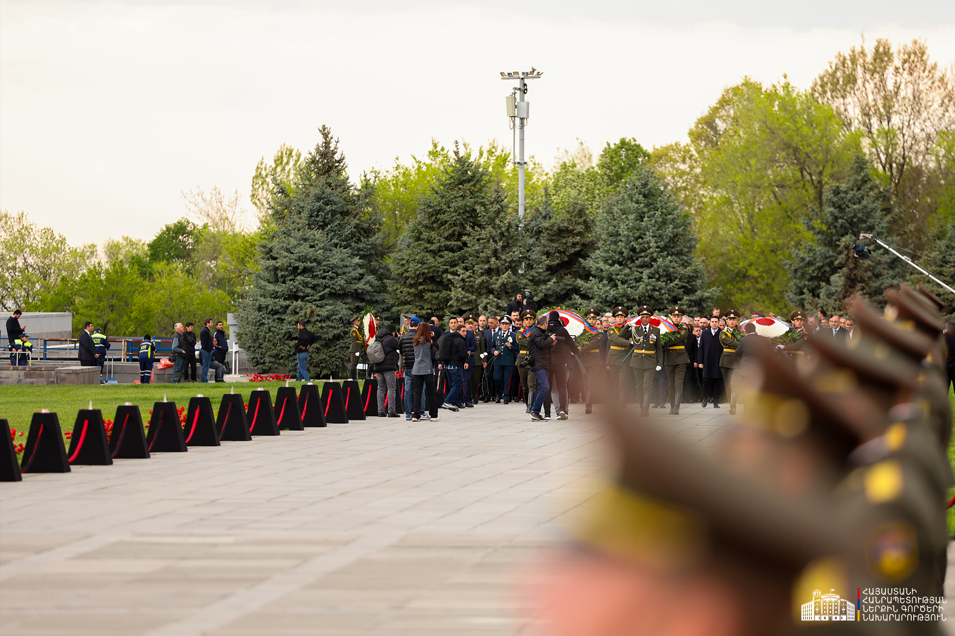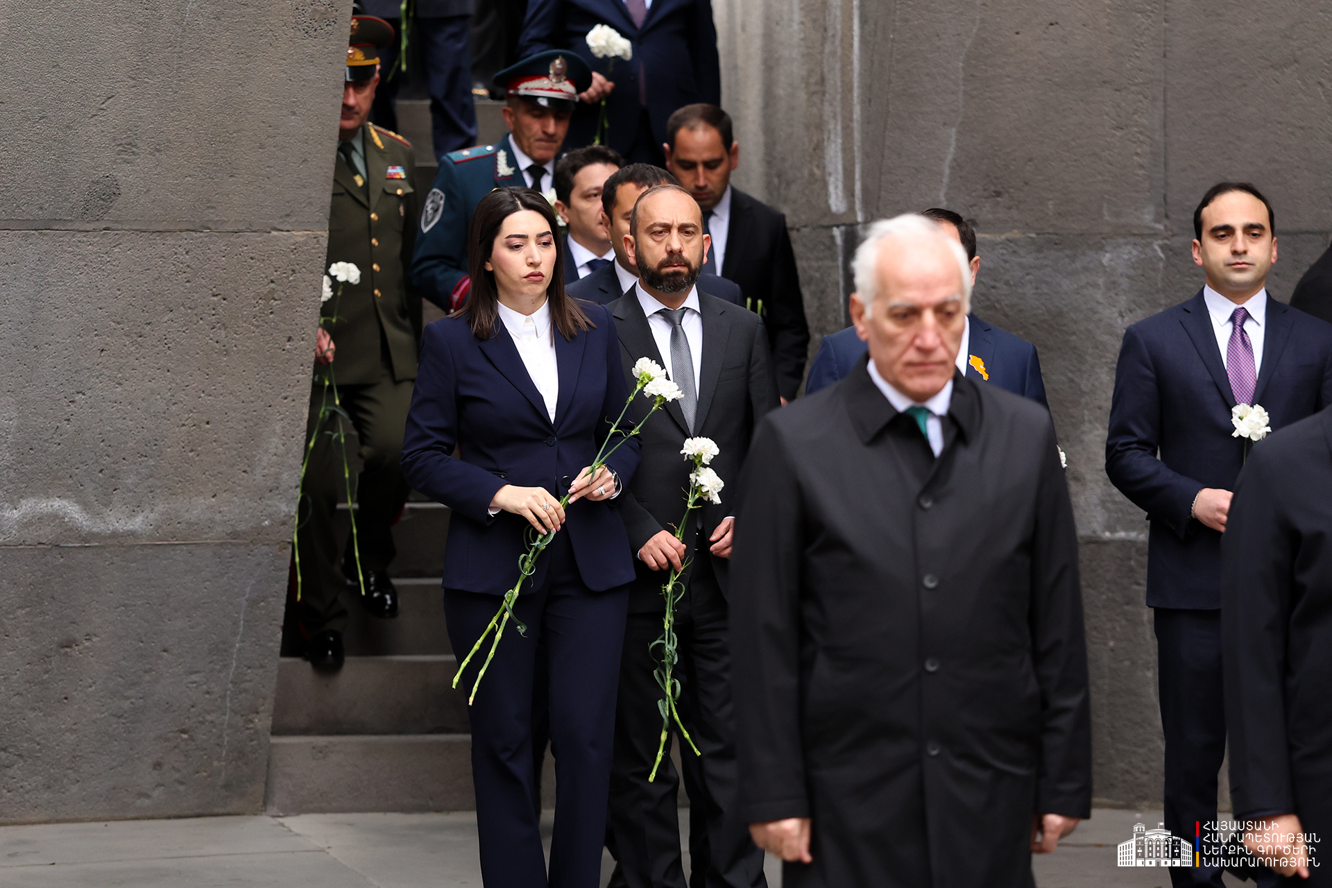 Երկրի բարձրագույն ղեկավարությունը ծաղկեպսակներ է դրել հուշակոթողին, ծաղիկներ խոնարհել Հայոց ցեղասպանության զոհերի հիշատակը հավերժացնող անմար կրակի մոտ: